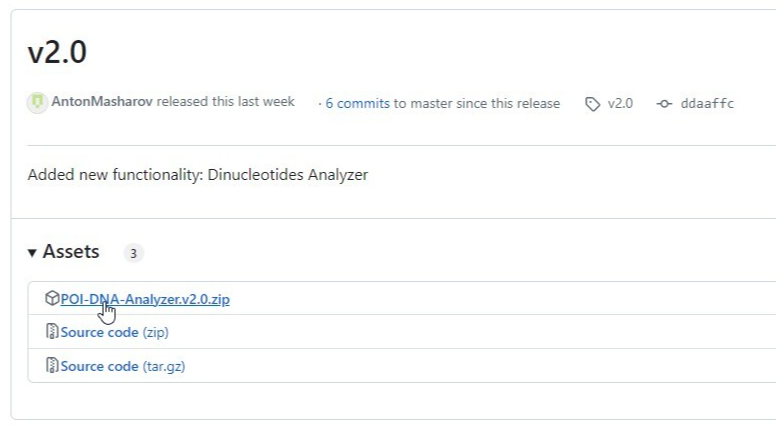 2. В открывшейся вкладке нажимаем на ZIP-файл с названием "POI-DNA Analyzer" и скачиваем его на свой компьютер;